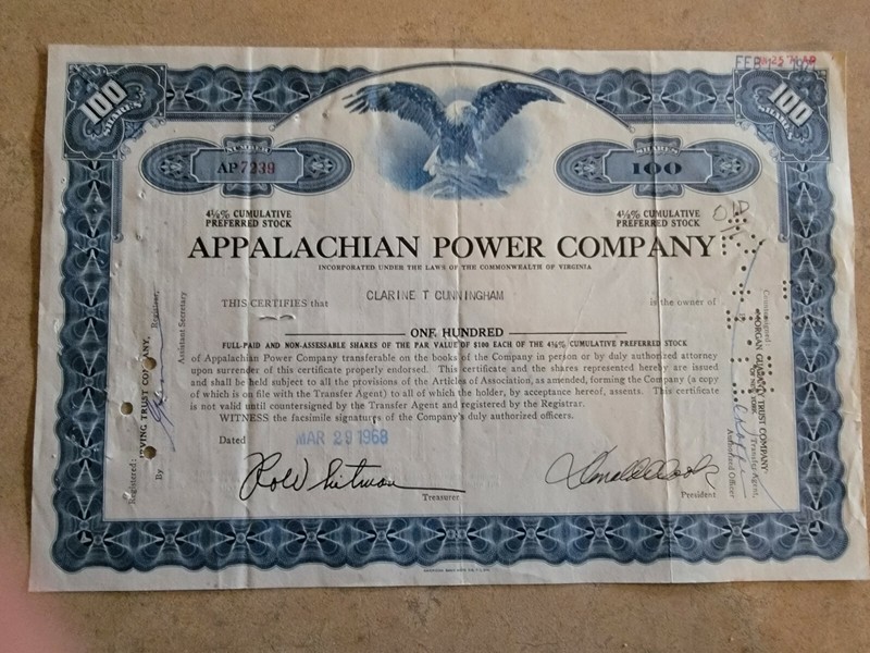 Lot Of 5 Power Company Stock Certificates