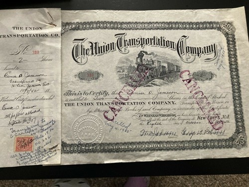 The Union Transportation Company Railroad Stock Certificate - New Egypt, Nj