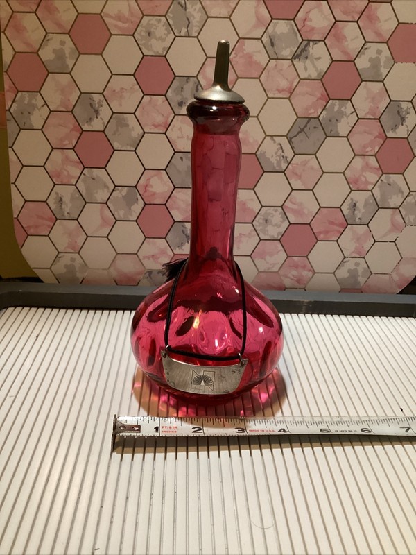 Tiffany & Co. Sterling Silver Tag Cranberry Decanter Bottle Hand Blown Rare