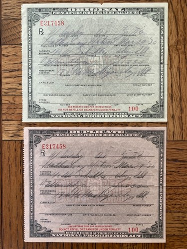Rare Watson Chicago 1930 Prohibition Whiskey Medicinal Liquor Prescription Forms