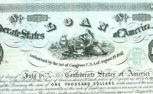Confederate States Of America $ 1000 Loan + Coup. Liberty Richmond 1862 Usa Csa