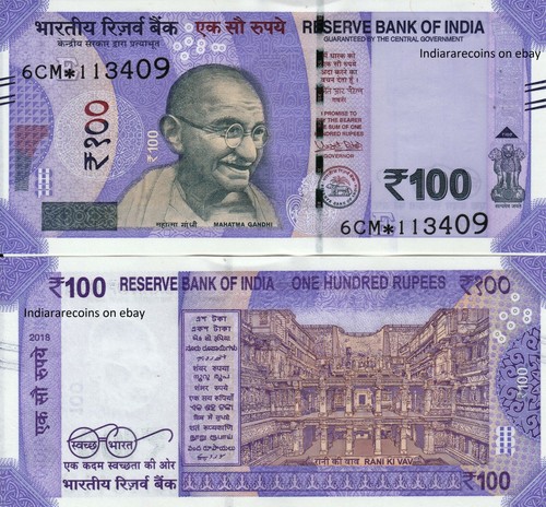 India 100 Rs Urjit Patel 2018 E Inset Star Replacement Paper Money Bank Note Unc