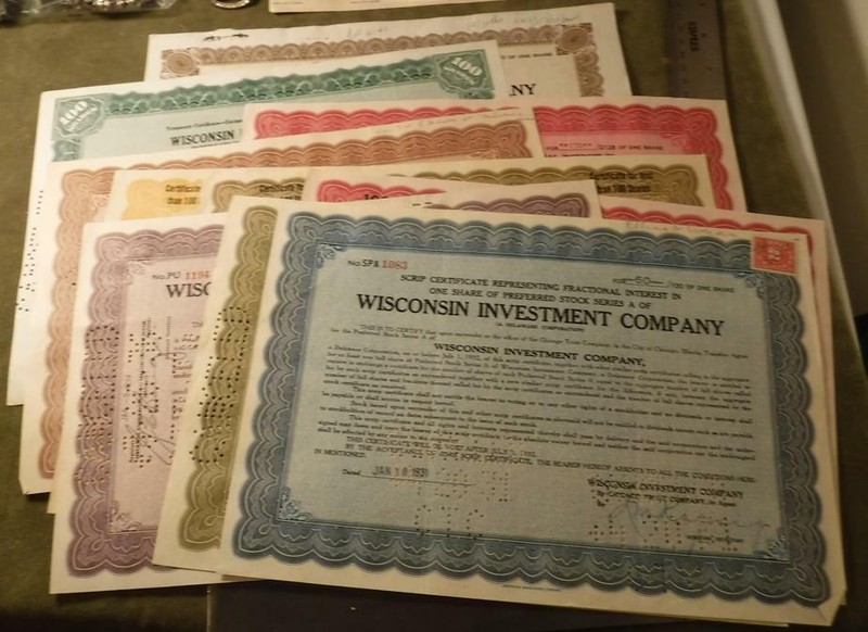 Wisconsin Investment Co.-10 Certificates--Nice-See Pic