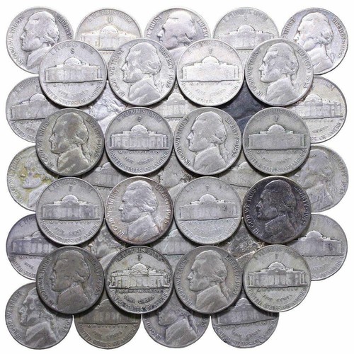 35% Silver War Nickels 40-Coin $2 Face-Value Roll Average Circ