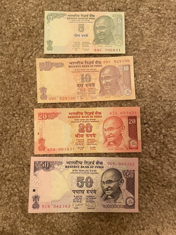 Lot Of 4 Indian Rupees Banknotes Gandhi