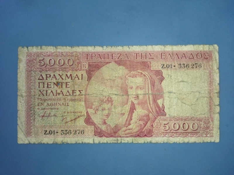 5.000 Drachma Drachmai Drachmen 1945 Red Maternity Greek Greece Banknote Note!!