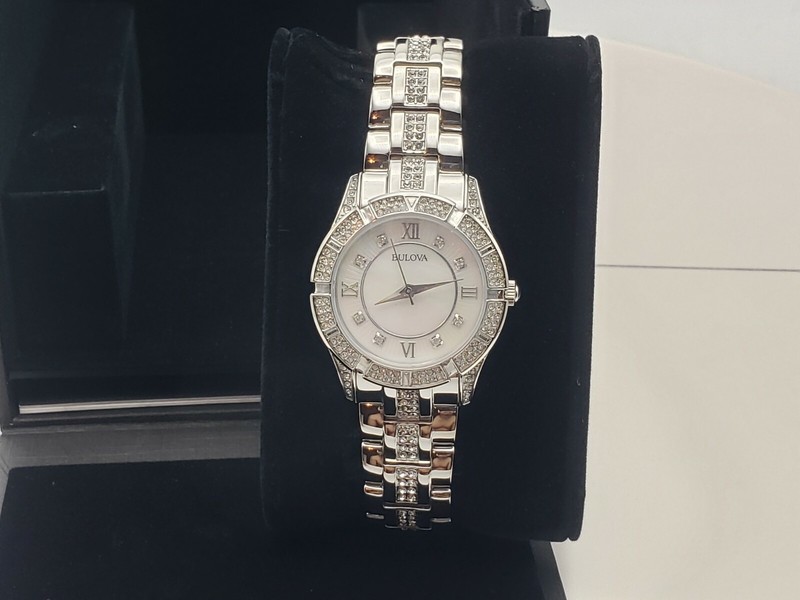 Bulova Crystal Quartz Ladies Watch, Stainless Steel , Silver-Tone 96L116