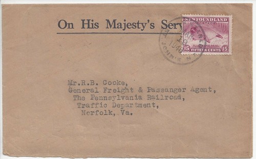 Newfoundland: 1940,3,19 Ohms Registered Cover St. Johns To Norfolk, Va Usa