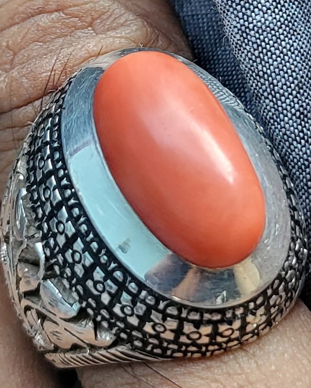 Natural Coral Gemstone 17Ct In Handmade Pure Silver Ring