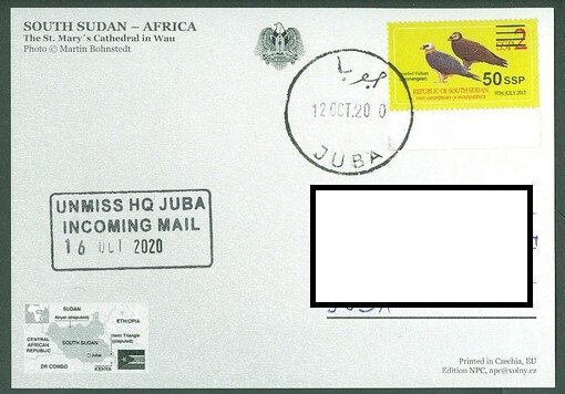 Postally Used South Sudan Postcard Postmarked 2020 Juba Post Office