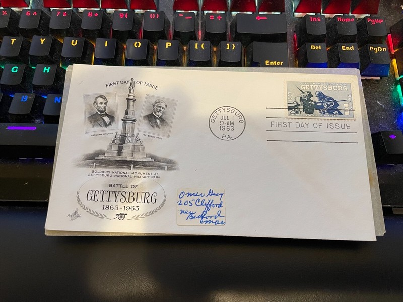 1963 First Day of Issue Cover Battle OF Gettysburg Abe Lincoln Jefferson Davis
