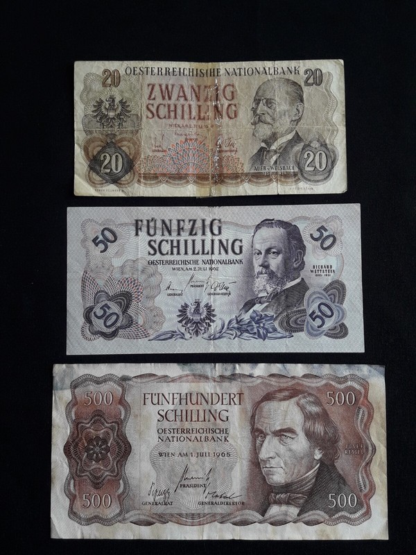 Austria 20 50 (1962) 500 (1965) Schilling Banknotes - Damaged