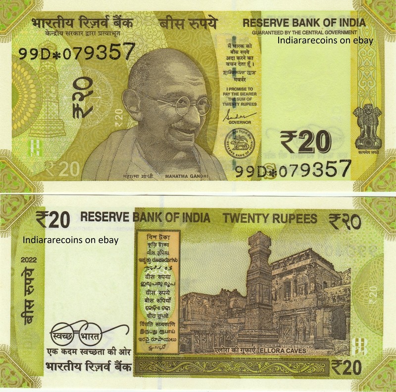 India 2022 Star Replacement Gandhi Series 20 RS Inset 99D Bank Note UNC Rare