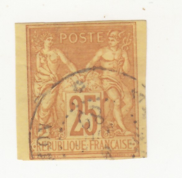France 1879 90. Peace & Commerce Pax & Mercur. 25c. Yellow. Imperf. Sc# 99a Used