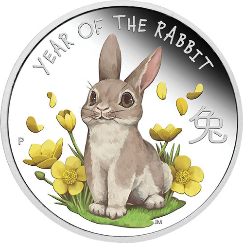 2023 1 2 oz Proof Colorized Tuvalu Silver Lunar Baby Rabbit Coin (Box CoA)