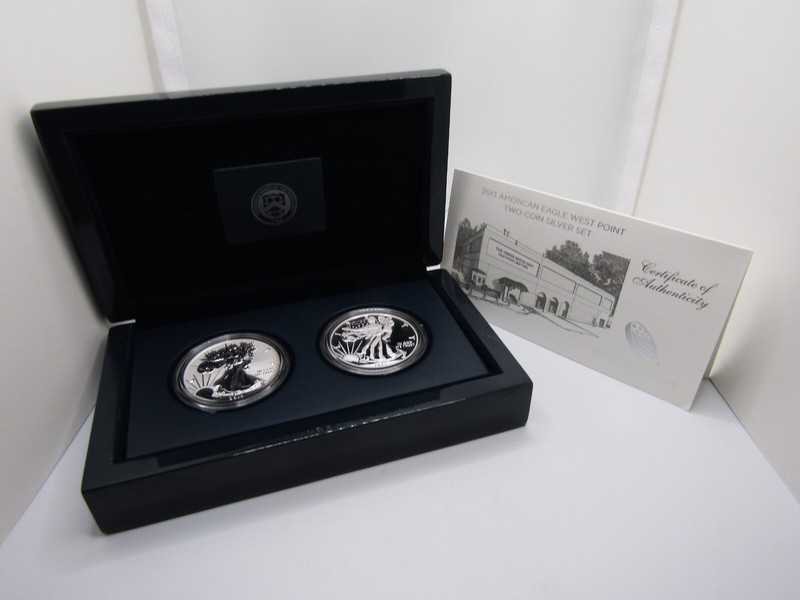 2013 West Point Silver Eagle Two Coin Set Rev. Proof, Enhanced Unc Box & COA