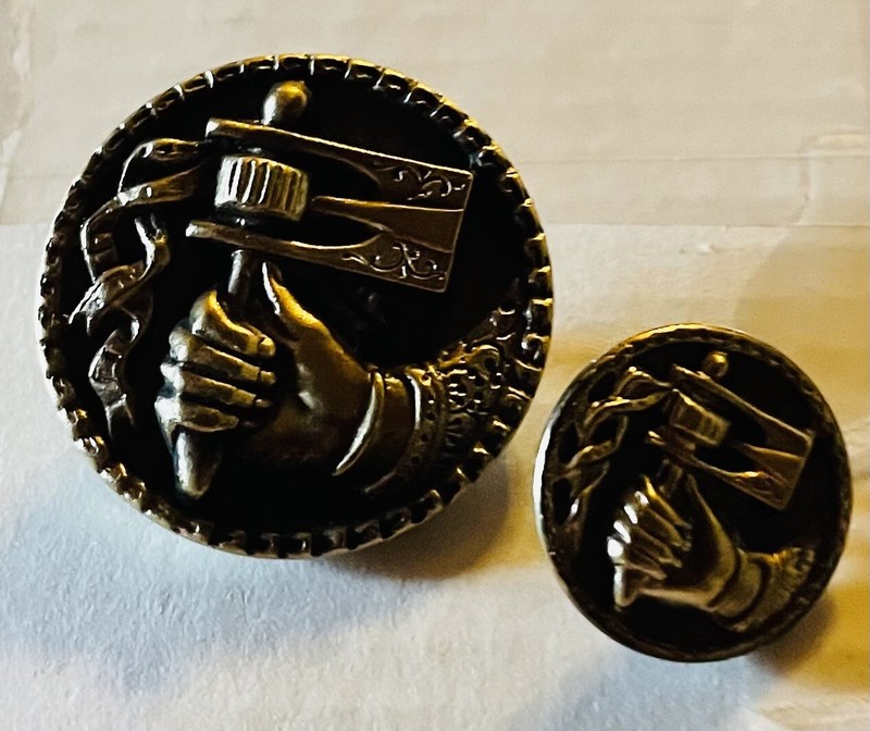 Ex Rare Antique Pair Medieval Clackers Brass Buttons, Ca., 1880s 1890s