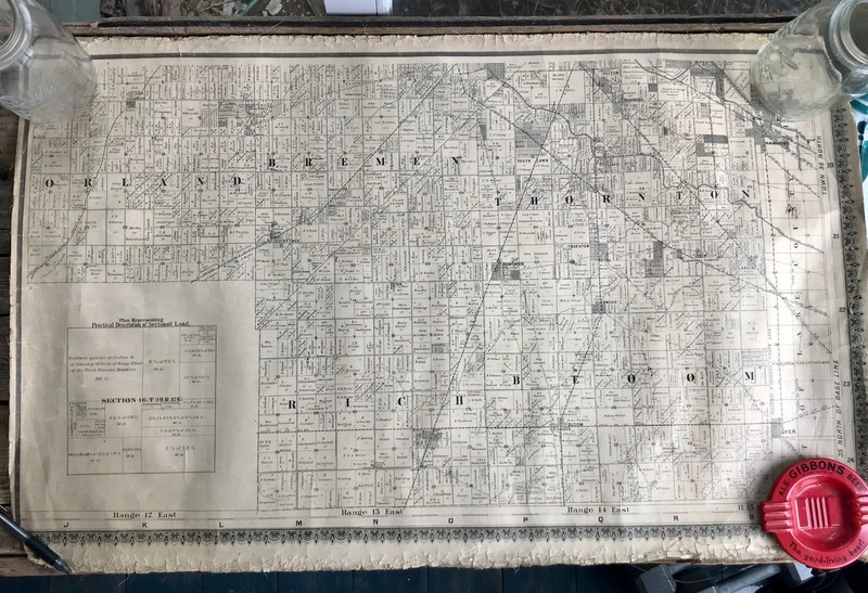 Rare Original Cook County IL map on Linen (1886) Orland, 5 Townships Snyder
