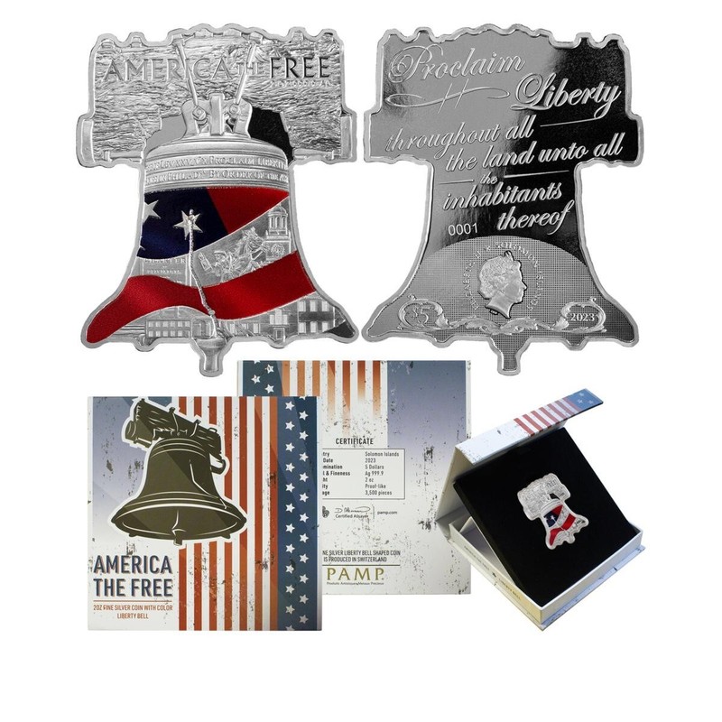 2023 Pamp America the Free Liberty Bell 2oz Shaped Silver Coin