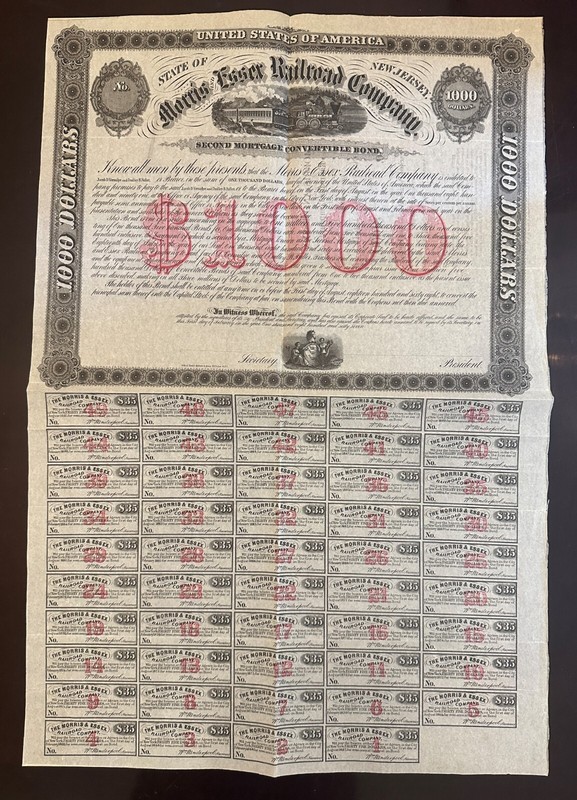 (Lot of 2) Railroad Bonds: 1868 Morris & Essex 1890 Utica & Black River