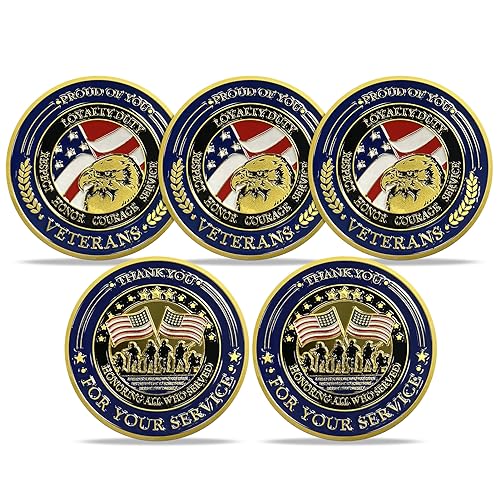 5pcs Military Thank You for Your Service Challenge Coins Collectible Gift for Veterans Day