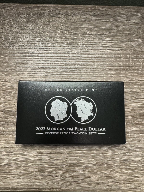 Morgan and Peace Dollar 2023 Two Coin Reverse Proof Set 23xs IN Handfall 2023