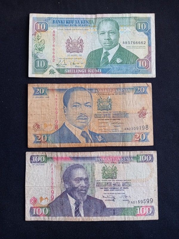 Kenya 10 20 100 Shilingi Shillings Banknotes - Circulated Damaged