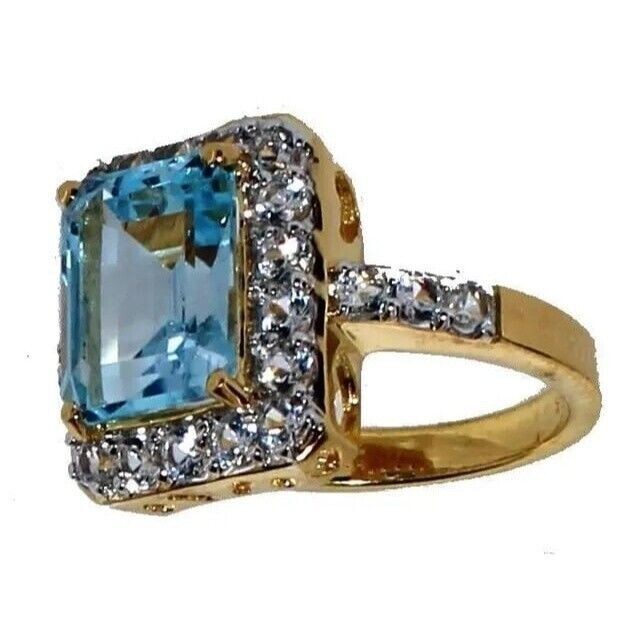 Emerald Cut 4.10 ct Natural Swiss Blue Topaz Ring