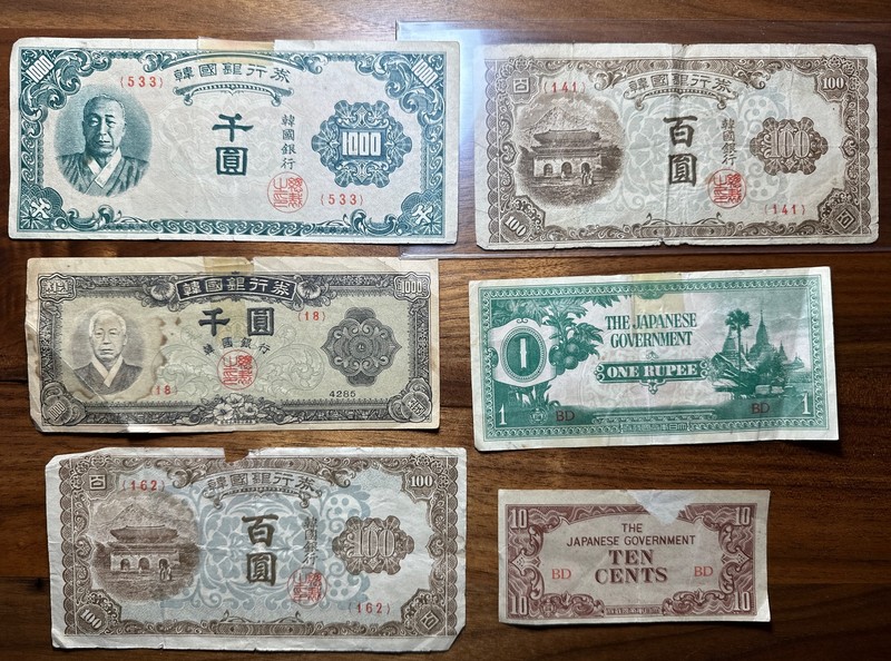 Lot of 6 South Korea & Japan Occupation Banknotes. Free US Shipping. Skj6