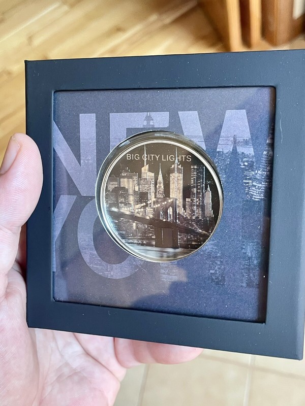 Huge 50mm 2022 Big City Lights New York Colorized Proof 1 oz Silver Coin