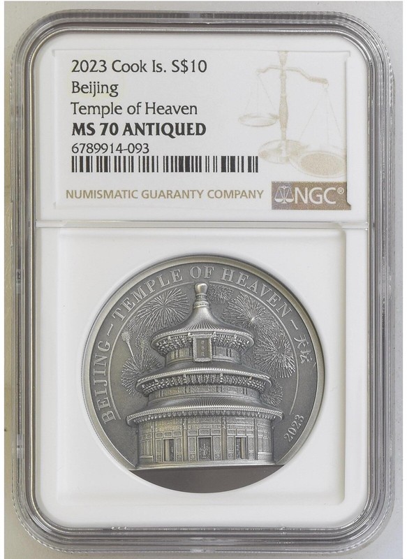 NGC Ms70 Antiqued 2023 Cook Islands 2oz Silver Coin - Beijing Temple of Heaven