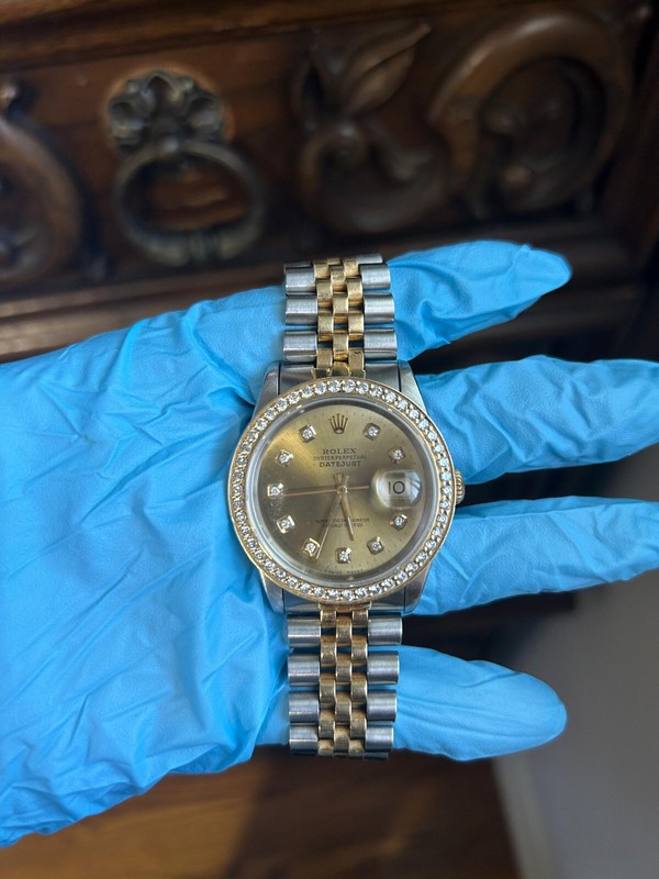 Rolex Datejust 36mm 18K Gold 1.65 Diamond Champagne Diamond Dial Men Watch 16233
