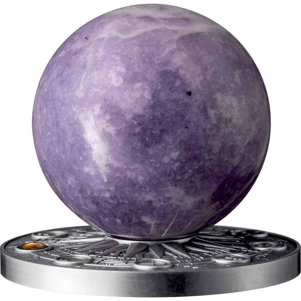 2024 Ghana Solar System Mercury 2 oz Silver Antiqued Lepidolite Spherical Coin