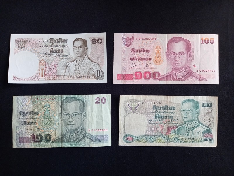 Thailand 10 2x 20 100 Baht Banknotes - Circulated