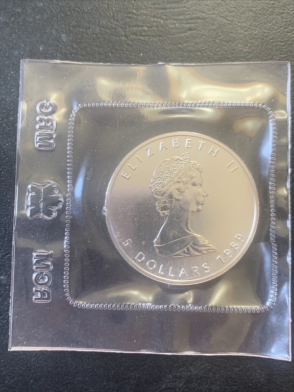1989 $5 Silver Maple Leaf Canadian Rcm Mint Sealed Ogp .9999 Fine Silver Coin