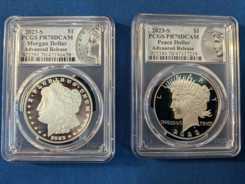 2023 $1 Proof Morgan & Peace Dollar 2 Coin Set Pcgs Pr70 Dcam Advanced Release