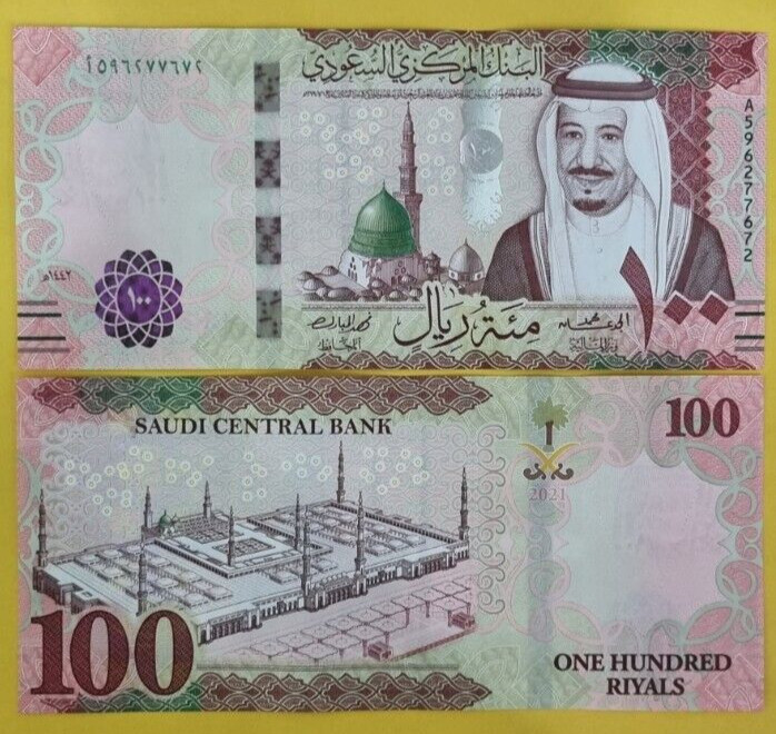 Saudi Arabia 100 Riyals 2021 41 one From a Bundle new Name Saudi Central Ban