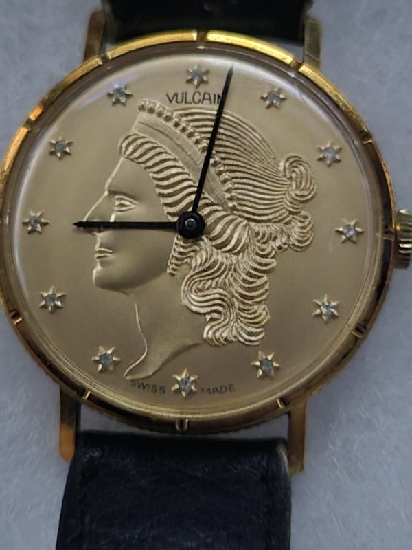 Vintage Vulcain Liberty Coin Diamond Men Hand Wind Watch 33mm Running