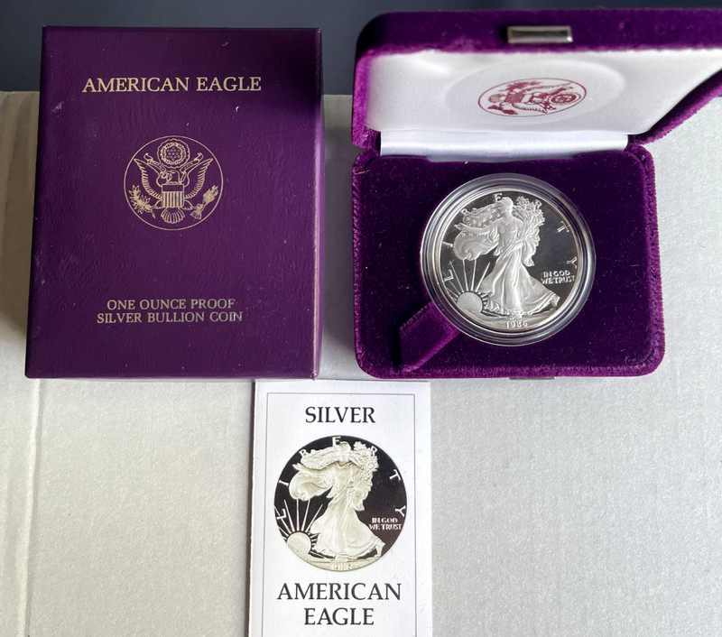 1986 1 oz American Eagle Proof Silver Bullion Coin COA