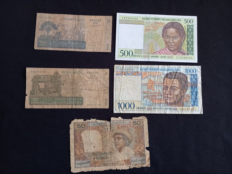 Madagascar 50 500 1000 Francs 100 200 Ariary Banknotes - Used Damaged