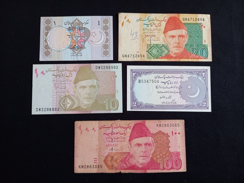 Pakistan 1 2 10 20 100 Rupees Banknotes - Circulated