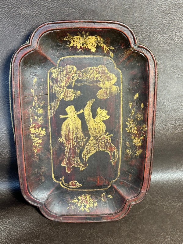 Rare Antique 1800s Chinese Red Lacquer Wood Tea Tray Qing Dynasty