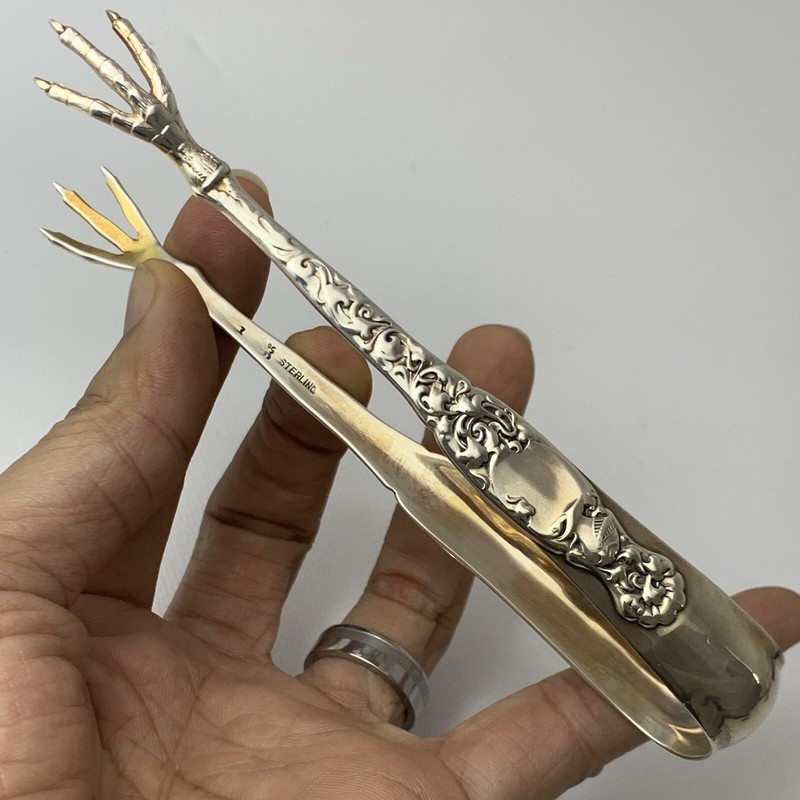 Rare Sterling Silver Ice Tong With Gold Plated Claws Engraved #1