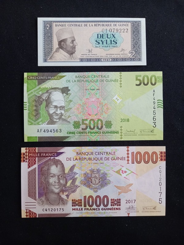 Guinea 2 Sylis 500 1000 Francs Banknotes - Circulated