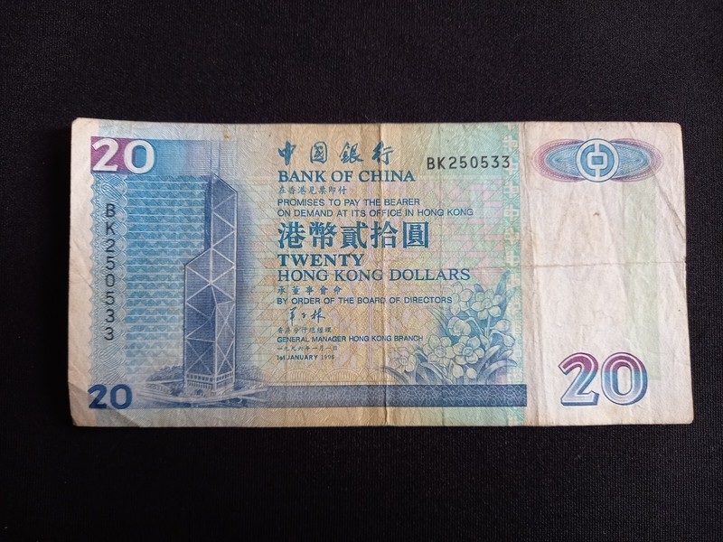 Hong Kong Bank of China 20 Dollars (1996) Banknote - Used Damaged