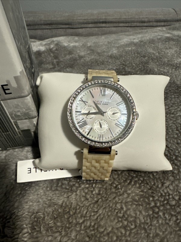 Ladies Nude Bracelet Bulova Caravelle Glitz MoP Crystal Watch - Retail $150