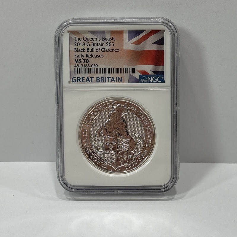 2018 2 oz British Silver Queen Beast Black Bull Coin Graded Ms70