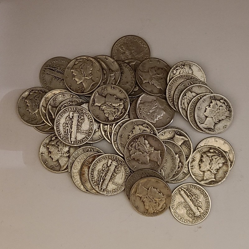 $5 Face Value of 90% Mercury Silver Dimes Full Dates. 50 Coin Roll.