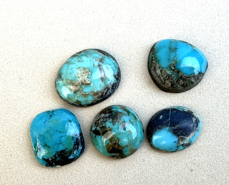 5 Vintage Probably Blue Gem Mine (?) Polished Turquoise Cabochons !