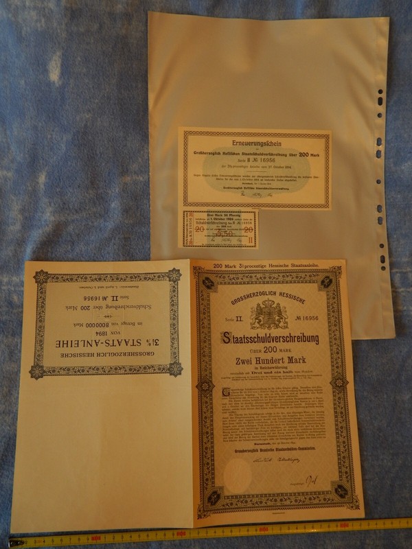 Gro Herzogtum Hessen : Staatsschuldverschreibung . 200 Mark, Darmstadt 1894 !